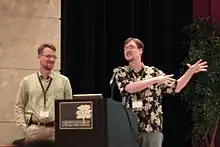 Slashdot has received over twenty awards, including People's Voice Awards in 2000 in both of the categories for which it was nominated (Best Community Site and Best News Site).[90] It was also voted as one of Newsweek's favorite technology Web sites and rated in Yahoo!'s Top 100 Web sites as the "Best Geek Hangout" (2001).[91] The main antagonists in the 2004 novel Century Rain, by Alastair Reynolds – The Slashers – are named after Slashdot users.[92] The site was mentioned briefly in the 2000 novel Cosmonaut Keep, written by Ken MacLeod.[93] Several tech celebrities have stated that they either checked the website regularly or participated in its discussion forums using an account. Some of these celebrities include: Apple co-founder Steve Wozniak,[94] writer and actor Wil Wheaton,[95] and id Software technical director John Carmack.[96]