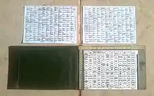 The cards were stored in a folding case that had a pair of cursors to facilitate locating cells. Messages were encrypted and decrypted using code strips that could be placed in holder along the top and left side of the vocabulary card. Blank vocabulary cards were provided to allow units to create a word set for a specific mission.