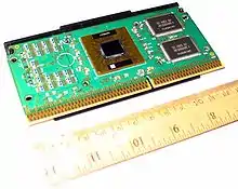 A form factor called SECC2 was used for late Pentium II and Pentium III CPUs for Slot 1, which was created to accommodate the switch to flip chip packaging.[4] Only the front plate was carried over, the coolers were now mounted straight to the PCB and exposed CPU die and are, as such, incompatible with SECC cartridges.