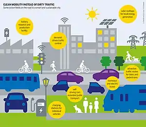 The transition to a smart city entails internal changes in urban planning, management, and operation, with digital implementation serving as a driving force and objective.[22] Specifically within smart city trajectories, there is a heightened emphasis on utilizing data to inform decision-making processes. For instance, smart city technologies enable the monitoring of traffic flow, energy consumption, air quality, and various other parameters.[23][24] Subsequently, this data can be analyzed to pinpoint areas for enhancement and optimize urban services. Moreover, smart city technologies facilitate improved communication and collaboration among different departments and stakeholders.