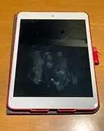 A smudge attack is an information extraction attack that discerns the password input of a touchscreen device such as a cell phone or tablet computer from fingerprint smudges. A team of researchers at the University of Pennsylvania were the first to investigate this type of attack in 2010.[1][2] An attack occurs when an unauthorized user is in possession or is nearby the device of interest. The attacker relies on detecting the oily smudges produced and left behind by the user's fingers to find the pattern or code needed to access the device and its contents.[2] Simple cameras, lights, fingerprint powder, and image processing software can be used to capture the fingerprint deposits created when the user unlocks their device. Under proper lighting and camera settings, the finger smudges can be easily detected, and the heaviest smudges can be used to infer the most frequent input swipes or taps from the user.[1]