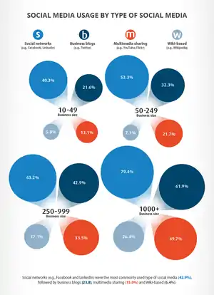 In 2014, over 80% of business executives identified social media as an integral part of their business.[7] Business retailers have seen 133% increases in their revenues from social media marketing.[8]