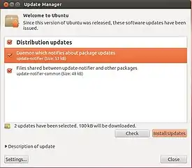 ![]() Update Manager in Ubuntu 12.04 LTS showing updates that are available to install | |