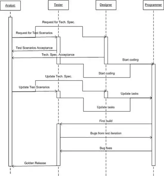 - Testers complete the test scenarios during the design phase, and evaluate them during the coding phase