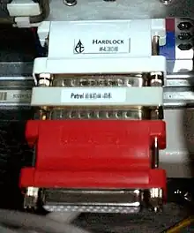 A software protection dongle (commonly known as a dongle or key) is an electronic copy protection and content protection device. When connected to a computer or other electronics, they unlock software functionality or decode content.[1] The hardware key is programmed with a product key or other cryptographic protection mechanism and functions via an electrical connector to an external bus of the computer or appliance.[2]