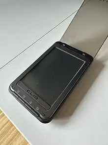 The Clié PEG-TH55 is a Personal Digital Assistant (PDA) which was manufactured by Sony. The PEG-TH55 ran Palm OS (version 5) and featured a built-in camera, Wi-Fi, Bluetooth on non-US versions and an MP3/Atrac Player.