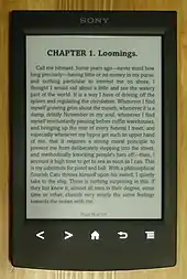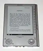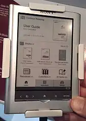 The Sony Reader (ソニー・リーダー) was a line of e-book readers manufactured by Sony. The first model was the PRS-500 released in September 2006 and was related to the earlier Sony Librie, the first commercial E Ink e-reader in 2004 using an electronic paper display developed by E Ink Corporation.[1] The last model was the PRS-T3, after which Sony announced it would no longer release a new consumer e-reader.[2]