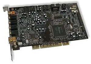 Sound Blaster Audigy is a product line of sound cards from Creative Technology. The flagship model of the Audigy family used the EMU10K2 audio DSP, an improved version of the SB-Live's EMU10K1, while the value/SE editions were built with a less-expensive audio controller.