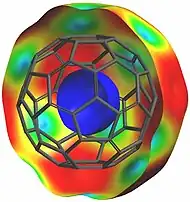 - Electron density – The density, ρ(r), is a function of the coordinates r, defined such that ρ(r)dr is the number of electrons inside a small volume dr. This is what is measured in an X-ray diffraction experiment. The density may be portrayed in terms of an isosurface (isodensity surface) with the size and shape of the surface being given by the value (or percentage of enclosure) of the electron density.