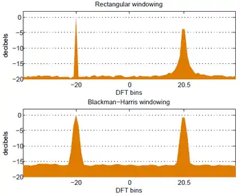 - ↑ Sometimes both a windowed and an unwindowed (rectangularly windowed) DFT are needed.