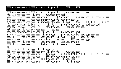 - SpeedScript: The Word Processor for the Commodore 64 and VIC-20 https://archive.org/details/Computes_Speedscript
