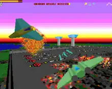 FlaYmz worked with MicroDigital to produce a killer game for release of the Omega computer, showing off the power of a dedicated graphics card in a RISC OS computer. The port was developed on StrongARM RISC PCs which, for most of the development, were too slow to run the game at a decent fps. However, the deal fell through when MicroDigital started showing financial difficulties. Optimisations were done to the code to make it playable on the StrongARM. Later, in April 2008, this version was made available for through RiscWorld magazine, the full version being bundled free with Volume 8, Issue 6.[3] FlaYmz had no involvement in the release in 2008, having disbanded shortly after Microdigital failed due to the market decline.