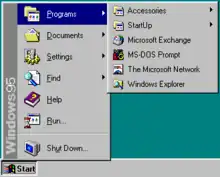 The Start menu is a graphical user interface element that has been part of Microsoft Windows since Windows 95, providing a means of opening programs and performing other functions in the Windows shell. The Start menu, and the Taskbar on which it appears, were created and named in 1993 by Daniel Oran, a program manager at Microsoft who had previously collaborated on great ape language research with the behavioral psychologist B.F. Skinner at Harvard.[1][2][3][4]