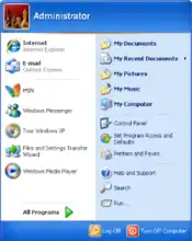The first major overhaul to the Start menu was introduced in Windows XP and was later included in Windows Server 2003. The Start menu was expanded to two columns: the left-hand column focuses on installed programs, while the right-hand column provides access to My Documents, My Pictures, My Music and other special folders.[5] This column also includes shortcuts for Computer and Network (Network Neighborhood in Windows 95 and 98), which were placed on the Desktop in prior versions of Windows.[5] The contents of this column can be customized. Commonly used programs are automatically displayed in the left-hand menu. Users may opt to "pin" programs to this side of the Start menu so that they are always accessible. A sub-menu item at the bottom of this column grants access to all items of Start menu. When this menu item is selected, a scrolling list of Start menu programs replaces the user/recent list.
