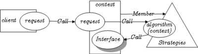 Instead, Context refers to the Strategy interface for performing an algorithm (strategy.algorithm()), which makes Context independent of how an algorithm is implemented.