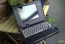 Another early model was the Hewlett-Packard OmniBook 300, which was launched as a "superportable" in 1993; it was one of the first examples to use a flash memory disk instead of a hard drive, to reduce the weight.[20]