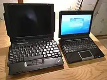 IBM had sold "thin and light" models in its ThinkPad range, such as the ThinkPad 560 ultraportable (1996) and best-selling ThinkPad 600 (1998). It finally entered the subnotebook market in 1999 with the 1.3 kg ThinkPad 240, targeted at business travellers.[25] The 240 and 240X had 10.4″ screens. Later, however, IBM replaced these with the X range, with 12.1″ screens.[26]