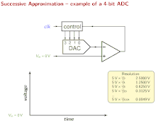 A successive-approximation ADC is a type of analog-to-digital converter (ADC) that converts a continuous analog waveform into a discrete digital representation using a binary search through all possible quantization levels before finally converging upon a digital output for each conversion.