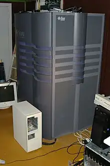 The Enterprise 10000, E10k or Starfire (a development code name also used for marketing purposes) is a high-end multiprocessor data center server capable of being configured with up to 64 UltraSPARC II processors. This was largely designed by Cray Research's Business Systems Division as a successor to the Cray Superserver 6400, itself related to Sun's earlier Sun-4d architecture servers. After Cray was acquired by Silicon Graphics in 1996, this division was sold on to Sun, who then launched the Starfire as the Ultra Enterprise 10000 in 1997.