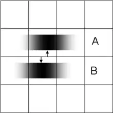 An image is formed using the normal passband of the optical device. Then some known light structure, for example a set of light fringes that need not even be within the passband, is superimposed on the target.[8][9] The image now contains components resulting from the combination of the target and the superimposed light structure, e.g. moiré fringes, and carries information about target detail which simple unstructured illumination does not. The “superresolved” components, however, need disentangling to be revealed. For an example, see structured illumination (figure to left).