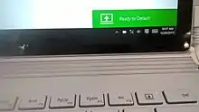The device consists of a tablet portion with a 13.5 inches (34 cm), 3000×2000 resolution display,[1] and a keyboard attachment.[8] That allows it to function similarly to a traditional laptop. Both components are constructed from machined magnesium.[14][15] The Surface Book's keyboard utilizes a dynamic fulcrum hinge, which compresses when closed, and expands outwards when opened. The hinge design allows the tablet portion to be held up at an angle resembling a traditional laptop screen without the use of a kickstand, a supporting part found in Surface-series devices, and increases the physical room between the keyboard and the tablet.[13][16]