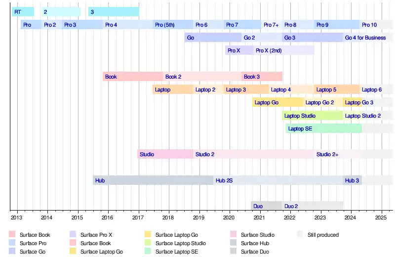 | Input | Keyboard, touchpad mouse, stylus pen, sensors: accelerometer, gyroscope, magnetometer, ambient light, Surface Dial |