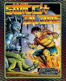 Switchblade is a 1989 side-scrolling action-platform run and gun video game originally developed by Core Design and published by Gremlin Graphics in Europe for the Atari ST home computers.[1][2] The first installment in the eponymous two-part series, the game is set in a dystopian future where players assume the role of Hiro from the Blade Knights as he embarks on a journey to defeat Havok, the main antagonist who broke free from his imprisonment after the sacred Fireblade was shattered into several pieces. Its gameplay consists of run and gun action mixed with platforming and exploration elements, with a main single-button configuration.