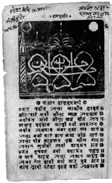 The Muslim Conquest of Sylhet in 1303 CE extended the migratory movements of Muslims from western lands, who settled among the native population and greatly influenced the local language.[27] Thus Sylheti derived a large number of words from Persian and Arabic,[28] cultivating the Perso-Arabic influence on the vernacular.[29] A script was developed in the region called Sylheti Nagri, which primarily focused on disseminating Sufi poetry, known as puthi.[30] Its earliest known work had been written during the 1600s, called Bhedsar by Syed Shah Husayn Alam.[31] The literature was transcribed in the standard form of late Middle Bengali, though its phonology and some of its vocabulary was strongly influenced by Sylheti.[32][33] The script was read and taught culturally among households and was not institutionalised,[32] as the Islamic dynasties who ruled over Bengal established Persian alongside Arabic as the official languages.[34] Printed texts of the script reached its peak during the late 19th century, however its use became obsolete by around the middle of the 20th century.[35]