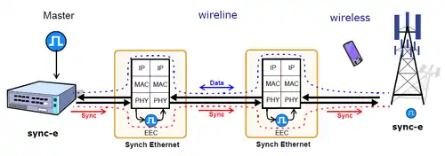 Synchronous Ethernet (SyncE) is an ITU-T standard for computer networking that facilitates the transference of clock signals over the Ethernet physical layer. This signal can then be made traceable to an external clock.