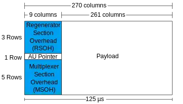 - User data (774 bytes for STM-0/STS-1, or 2,430 octets for STM-1/STS-3c)