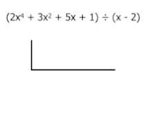 We concern ourselves only with the coefficients. Write the coefficients of the polynomial to be divided at the top.