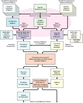 A system on a chip consists of both the hardware, described in § Structure, and the software controlling the microcontroller, microprocessor or digital signal processor cores, peripherals and interfaces. The design flow for an SoC aims to develop this hardware and software at the same time, also known as architectural co-design. The design flow must also take into account optimizations (§ Optimization goals) and constraints.