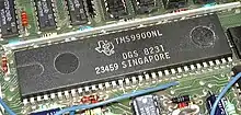 | TMS9995 | Improved TMS9985-like, no ROM. Used in the TI-99/2 & TI-99/8 prototypes, the Tomy Tutor and the Geneve computer Geneve 9640 |