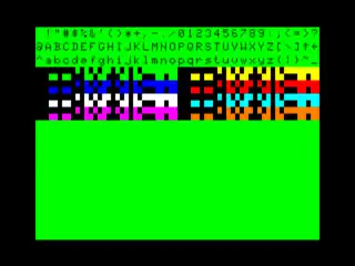 There are two colorsets. The default has black characters on a green background. The alternate has black characters on an orange background. The colorset selection does not affect semigraphics characters. The border is always black.