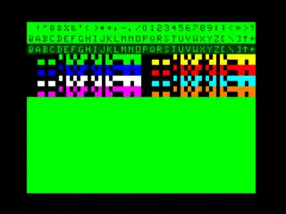 Semigraphics is a mode where alphanumerics and low resolution graphics can be mixed together. The 8th bit of a character determines if it is alphanumeric or treated as a 2×2 pixel grid. When the 8th bit is set, the next three bits determine the color and last 4 bits specify which quadrants of the character box are either the selected color or black. This allows a 64×32 graphics mode with 9 colors, the only mode where it is possible to display all 9 colors simultaneously.