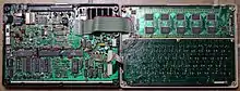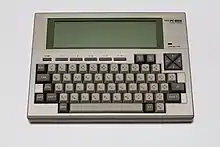 Tandy also released similar word processing portables for the education market based on a Z80-compatible CPU: the Tandy WP-2 in 1989 equipped with 32 KB of RAM and 256 KB of ROM containing the application software,[25] and the Tandy WP-3 in 1993 equipped with 64 KB of RAM.[26] The WP-2 provided serial and parallel interfaces, a cassette recorder port, an expansion card slot for 32 KB of non-volatile RAM, and an internal 32 KB RAM expansion slot. A disk drive was also available, connected via the serial port.[27] In 1993, Tandy also announced the Tandy PPC-10 pocket PC, based on an 80C86-compatible CPU and having 1 MB of RAM, bundled with MS-DOS 5.0, Microsoft Works 2.0, PC link and personal information management software, also featuring two PCMCIA slots.[26]