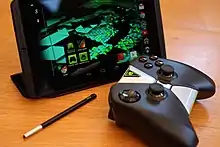 Some tablets are modified by adding physical gamepad buttons such as D-pad and thumb sticks for better gaming experience combined with the touchscreen and all other features of a typical tablet computer. Most of these tablets are targeted to run native OS games and emulator games. Nvidia's Shield Tablet, with an 8-inch (200 mm) display, and running Android, is an example. It runs Android games purchased from Google Play store. PC games can also be streamed to the tablet from computers with some higher end models of Nvidia-powered video cards. The Nintendo Switch hybrid console is also a gaming tablet that runs on its own system software, features detachable Joy-Con controllers with motion controls and three gaming modes: table-top mode using its kickstand, traditional docked/TV mode and handheld mode. While not entirely an actual tablet form factor due to their sizes, some other handheld console including the smaller version of Nintendo Switch, the Nintendo Switch Lite, and PlayStation Vita are treated as an gaming tablet or tablet replacement by community and reviewer/publisher due to their capabilities on browsing the internet and multimedia capabilities.[91]