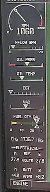 A tachometer (revolution-counter, tach, rev-counter, RPM gauge) is an instrument measuring the rotation speed of a shaft or disk, as in a motor or other machine.[1] The device usually displays the revolutions per minute (RPM) on a calibrated analogue dial, but digital displays are increasingly common.