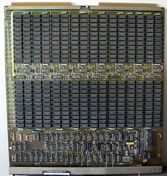 In 1983, the NonStop TXP CPU was the first entirely new implementation of the TNS instruction set architecture.[10][11][12] It was built from standard TTL chips and Programmed Array Logic chips, with four boards per CPU module. It had Tandem's first use of cache memory. It had a more direct implementation of 32-bit addressing, but still sent them through 16-bit adders. A wider microcode store allowed a major reduction in the cycles executed per instruction; speed increased to 2.0 MIPS. It used the same rack packaging, controllers, backplane, and buses as before. The Dynabus and I/O buses had been overdesigned in the T/16 so they would work for several generations of upgrades.