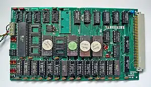 The Tangerine Microtan 65 (sometimes abbreviated M65) was a 6502-based single board microcomputer, first sold in 1979, that could be expanded into, what was for its day, a comprehensive and powerful system. The design became the basis for what later became the Oric Atmos and later computers. Those later machines have similar keyboard addressing and tape I/O as the Microtan 65. The Microtan 65 has a hardware single step function that can be used for debugging software in both ROM and RAM. The computer was available as ready-built boards or as kits consisting of board and components requiring soldering together.