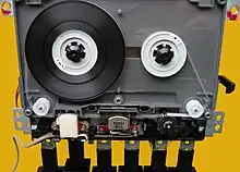 A tape transport is the collection of parts of a magnetic tape player or recorder that move the tape and play or record it. Transport parts include the head, capstan, pinch roller, tape pins, and tape guide. The tape transport as a whole is called the transport mechanism.