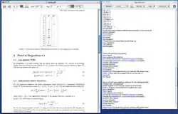 The program (then version 1.19) won the 2002 Apple Design Award of Best Mac Open Source Port[2] for its capability to display scientific and technical documents created in TeX format. In fact, TeXShop makes it possible, thanks first to "pdfsync.sty", to switch back and forth between code and preview easily, jumping at a corresponding spot, simply by a CMD-click. From TeXShop 1.35 onward this also works with multipart documents, which are joined by "\include". Also, with version 1.35 TeXShop was extended with XeTeX support.