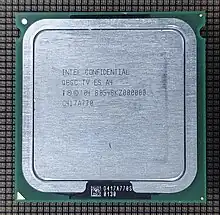 Initial claims reported early samples of single core 90 nm Tejas running at 2.8 GHz and rated for 150 W TDP on the LGA 775 socket,[7] a notable increase over single core 90 nm Prescott (Pentium 4 521, 2.8 GHz, 84 W TDP)[8] and higher than 90 nm dual core Smithfield (Pentium D 820, 2.8 GHz, 95 W TDP).[9] In contrast, 65 nm dual core Core 2 Duo processors had a maximum of 65 W TDP (E6850, 3.00 GHz)[10] while being much more efficient with markedly higher performance per clock.