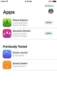 ![]() TestFlight app running on an iPhone | |