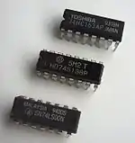 The 7400 series of transistor-transistor logic chips, developed by Texas Instruments in the 1960s, popularized the use of integrated circuits in computer logic. The military-grade version of this was the 5400 series.[33]