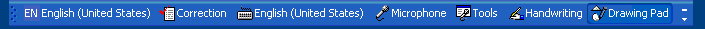 The Language Bar enables text services to add UI elements to the toolbar and enables these elements when an application has focus. From the Language Bar, users can select the input language, and control keyboard input, handwriting recognition and speech recognition.
