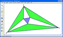 The Geometer's Sketchpad is a commercial interactive geometry software program for exploring Euclidean geometry, algebra, calculus, and other areas of mathematics. It was created as part of the NSF-funded Visual Geometry Project led by Eugene Klotz and Doris Schattschneider from 1986 to 1991 at Swarthmore College.[1] Nicholas Jackiw, a student at the time, was the original designer and programmer of the software, and inventor of its trademarked "Dynamic Geometry" approach; he later moved to Key Curriculum Press, KCP Technologies, and McGraw-Hill Education to continue ongoing design and implementation of the software over multiple major releases and hardware platforms. Present versions run Microsoft Windows and MacOS Ventura. It also runs on Linux under Wine with a few bugs.[2] There was also a version developed for the TI-89 and TI-92 series of Calculators.[3] In June 2019, McGraw-Hill announced that it would no longer sell new licenses.[4] Nonetheless, a license-free 64-bit version of Mac Sketchpad that is compatible with the latest Apple silicon chips is available. A license-free Windows version of the software is also available. The Sketchpad Repository contains over 200 videos, with Sketchpad and Web Sketchpad tutorials as well as an archive of Sketchpad webinars that were offered by Key Curriculum Press.