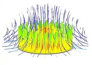 Online heat sink calculators from companies such as Novel Concepts, Inc. and at www.heatsinkcalculator.com[7] can accurately estimate forced and natural convection heat sink performance. For more complex heat sink geometries, or heat sinks with multiple materials or multiple fluids, computation fluid dynamics (CFD) analysis is recommended (see graphics on this page).