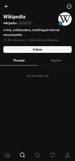 Screenshot ![]() The Threads account page for Wikipedia | |