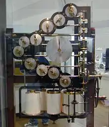 - ↑ see W Thomson (1881), a paper of Thomson's presented to the Institution of Civil Engineers in January 1881. Subsequent discussion at the same meeting of the Institution of Civil Engineers covered questions of history and priority about aspects of the design since 1872, see Proceedings for January 1881 especially pages 30-31. The design had been described at the British Association Meeting of 1872 and a model for an 8-component prototype shown at the British Association meeting of 1873.
